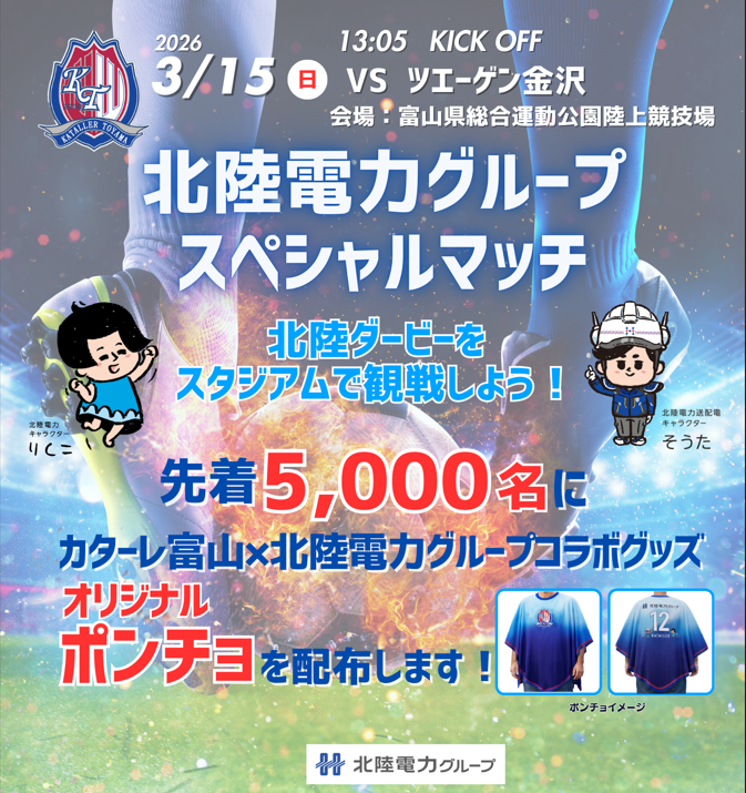 3/15(日)カターレ富山「北陸電力グループスペシャルマッチ」開催のお知らせ